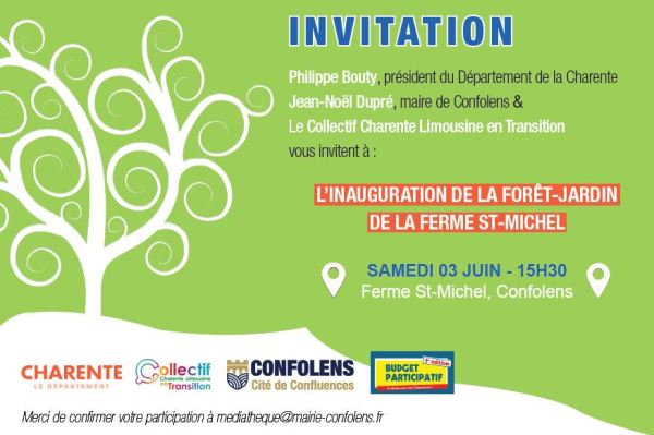 Après des semaines d’efforts festifs, et grâce au budget participatif du département de la Charente et à la ville de Confolens, le collectif Charente limousine en transition a l’honneur de vous inviter à l’inauguration de la forêt jardin.